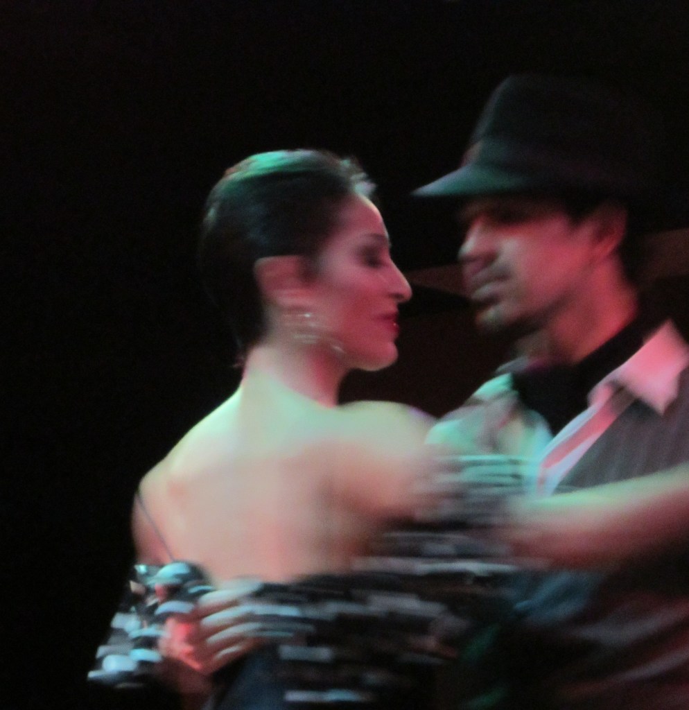 Two of the dancers in the Taconeando tango show. I love how it is almost possible to feel their movement in this photo. I took the photo from my table next to the stage.