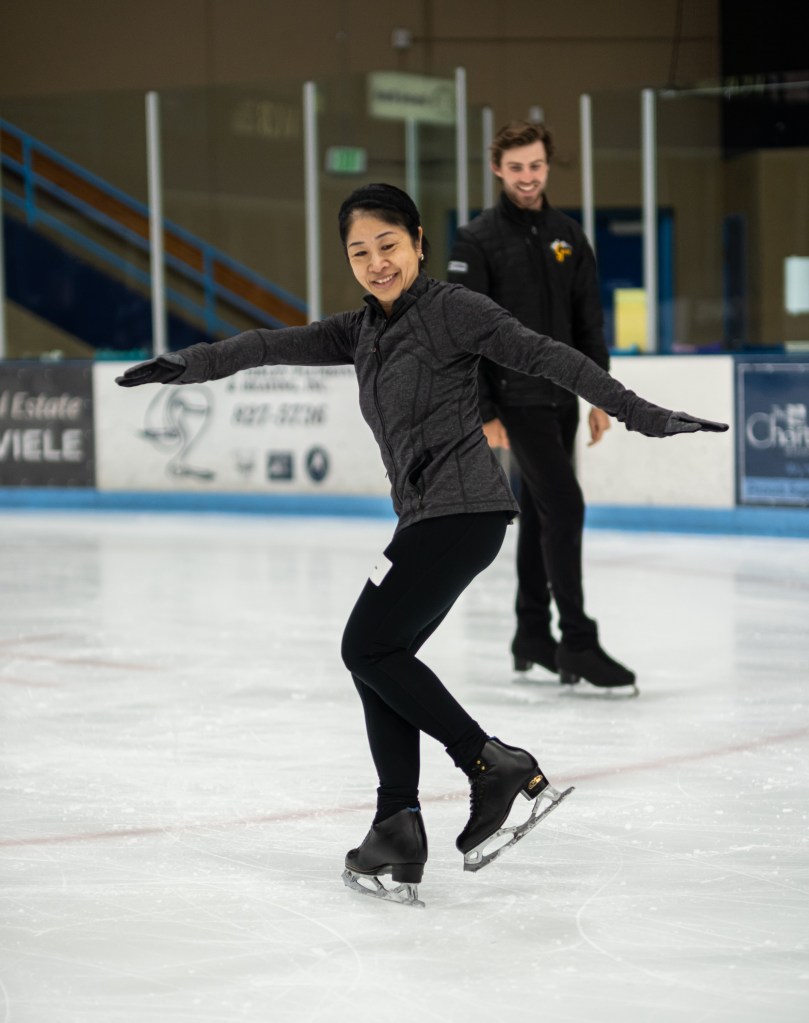 My key takeaway from the class was fascinatingly not about specific turns and steps, but rather the use of the arms to complete and add finishing touches to a choreographic sequence. As the coach put it, “an arm isn’t just an arm.” The arms aren’t simply attached to the body and along for the ride, but rather add depth, dimension, and character to the steps being skated. He encouraged us to include arm movements at key points in the sequence.